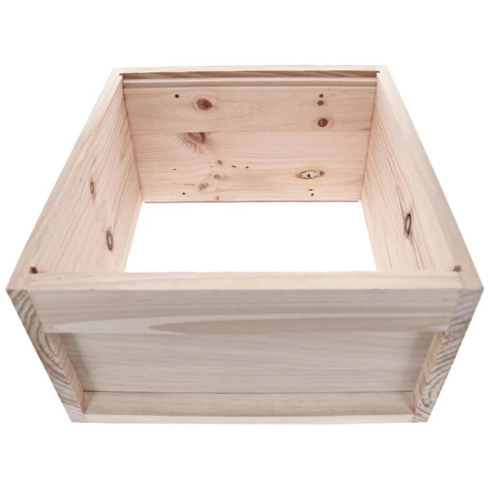 für 10 Rähmchen Normalmaß von 394 x 223mm. Gefertigt aus Weymouthkiefer mit Rutschleisten