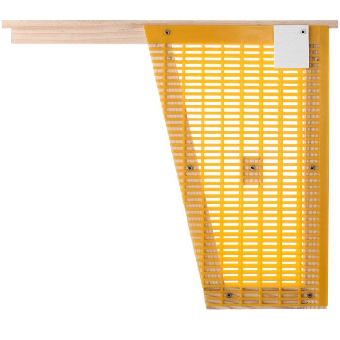 Holzrahmen mit doppelseitigem Kunststoff-Absperrgitter zum Käfigen der Königin, um das Volk brutfrei zu bekommen. Der Einsatz findet entweder im Sommer nach der zweiten Honigernte oder im Herbst/Winter statt, wobei sich die Bienentraube dank der Schräge um die Königin sammeln kann. Um Wildbau zu vermeiden, beträgt die Holzstärke nur 10 mm.