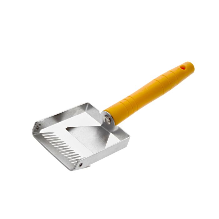 Ziehen statt Schieben. Edelstahl Entdecklungsgabel mit gelbem Kunststoffgriff und integriertem Hobel von 6,5 cm. Daher die Zelldeckel werden abgezogen statt abgeschoben. Einfach und schnell zu reinigen nach dem Gebrauch