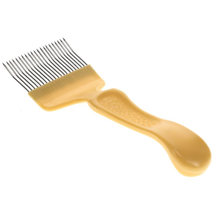 Entdecklungsgabel mit gelbem Kunststoffgriff GEBOGEN Nadeln