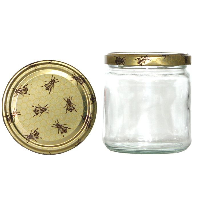 Rundglas 400 ml mit 82er Twist Off Deckel Biene auf Wabe