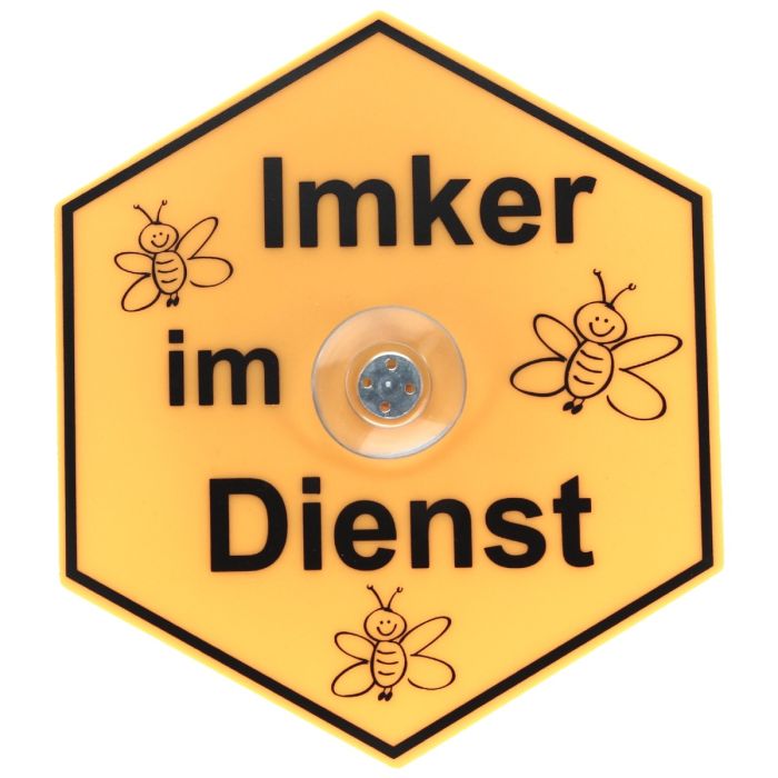 Beschreibung / Saugnapfschild "Imker im Dienst"