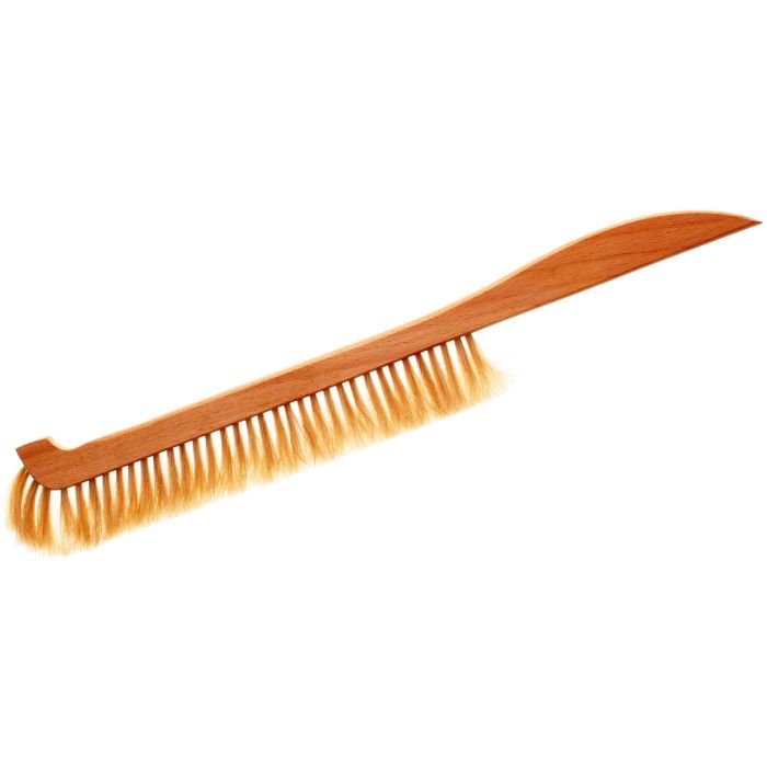 mit hellen und weichen Rosshaarborsten. Der Besen eignet sich durch seine gebogene Form besonders gut zum Abkehren