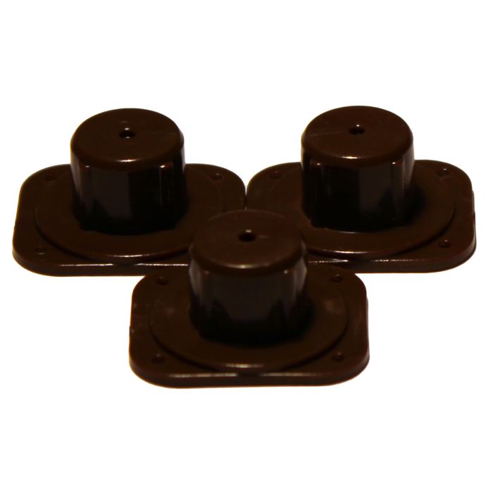 braun, wird am Rähmchenholz befestigt. Auf ihn wird der Weiselnapfhalter oder der Schutzblock aufgesteckt