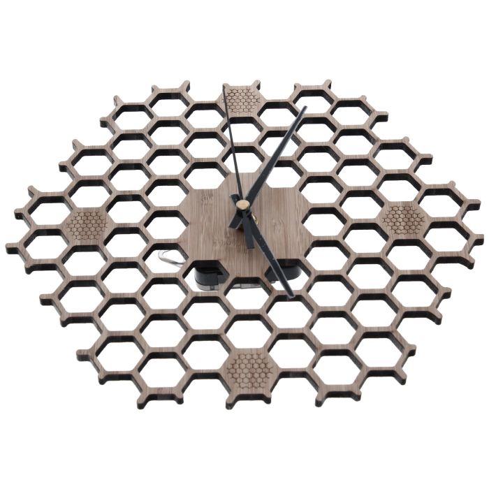 Geräuschlos und nachhaltig. Ausgestattet mit einem geräuschlosem Quarzwerk erregt diese einzigartige Wabenuhr Aufmerksamkeit - ohne lästiges Tickgeräusch. Hergestellt aus hochwertigem und nachhaltigem Bambus ist es das perfekte Geschenk für Imker und Designfans. Wird komplett montiert geliefert.